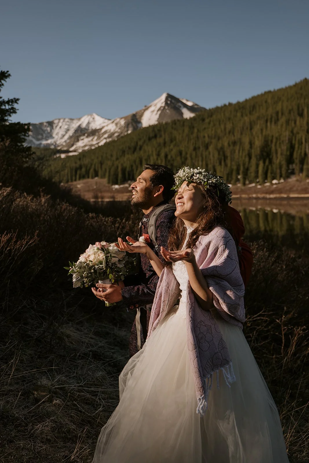 With elopements, the focus shifts. You're no longer choosing a dress to impress a crowd or match a ballroom—you're choosing something that feels true to you, that moves with you on a mountaintop, through a forest, or wherever your love story leads.