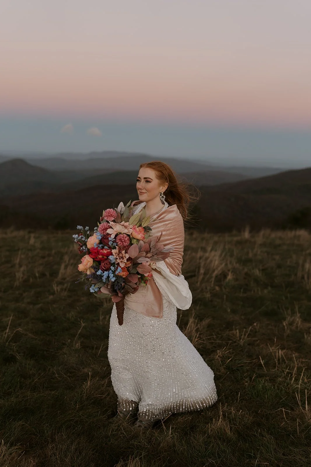 Fall transforms Max Patch into a kaleidoscope of rich, warm colors, making it one of the most visually striking seasons for an elopement. The foliage turns vibrant shades of red, orange, and yellow, providing a breathtaking natural backdrop that enhances the romance of your ceremony. The crisp, cool air adds a refreshing touch to the occasion, and the stunning vistas are framed by the changing leaves, creating a truly magical atmosphere. Fall is also a less crowded time compared to summer, offering a more secluded and intimate experience. Whether you choose a sunny afternoon or a golden-hued sunset ceremony, fall at Max Patch promises a picturesque and unforgettable elopement.